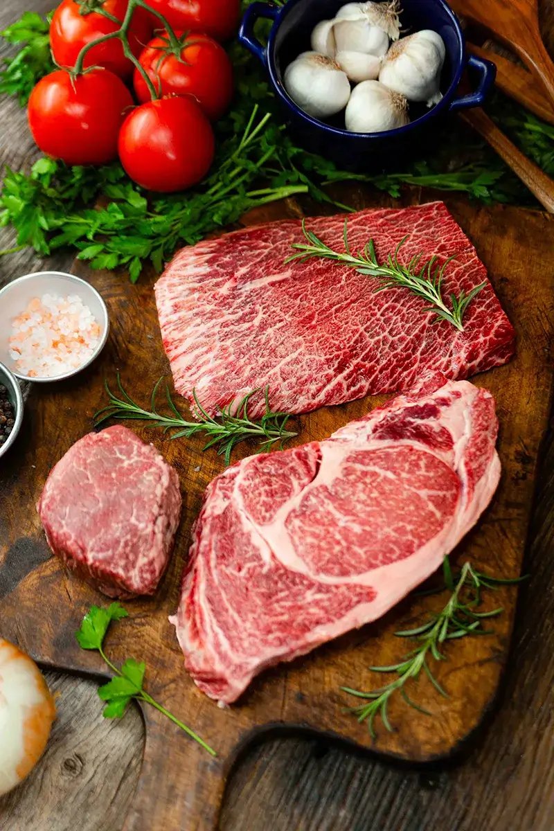 Akaushi Wagyu meat is known worldwide by its trademark marbling characteristics, tenderness and incredible flavor. Akaushi Wagyu beef has a higher percentage of fatty acids due to genetics, diet and environment, giving it a higher marbling score. The marbling gives the meat that buttery, melt-in-your-mouth texture and holds that intense flavor, setting it apart from all other beef.